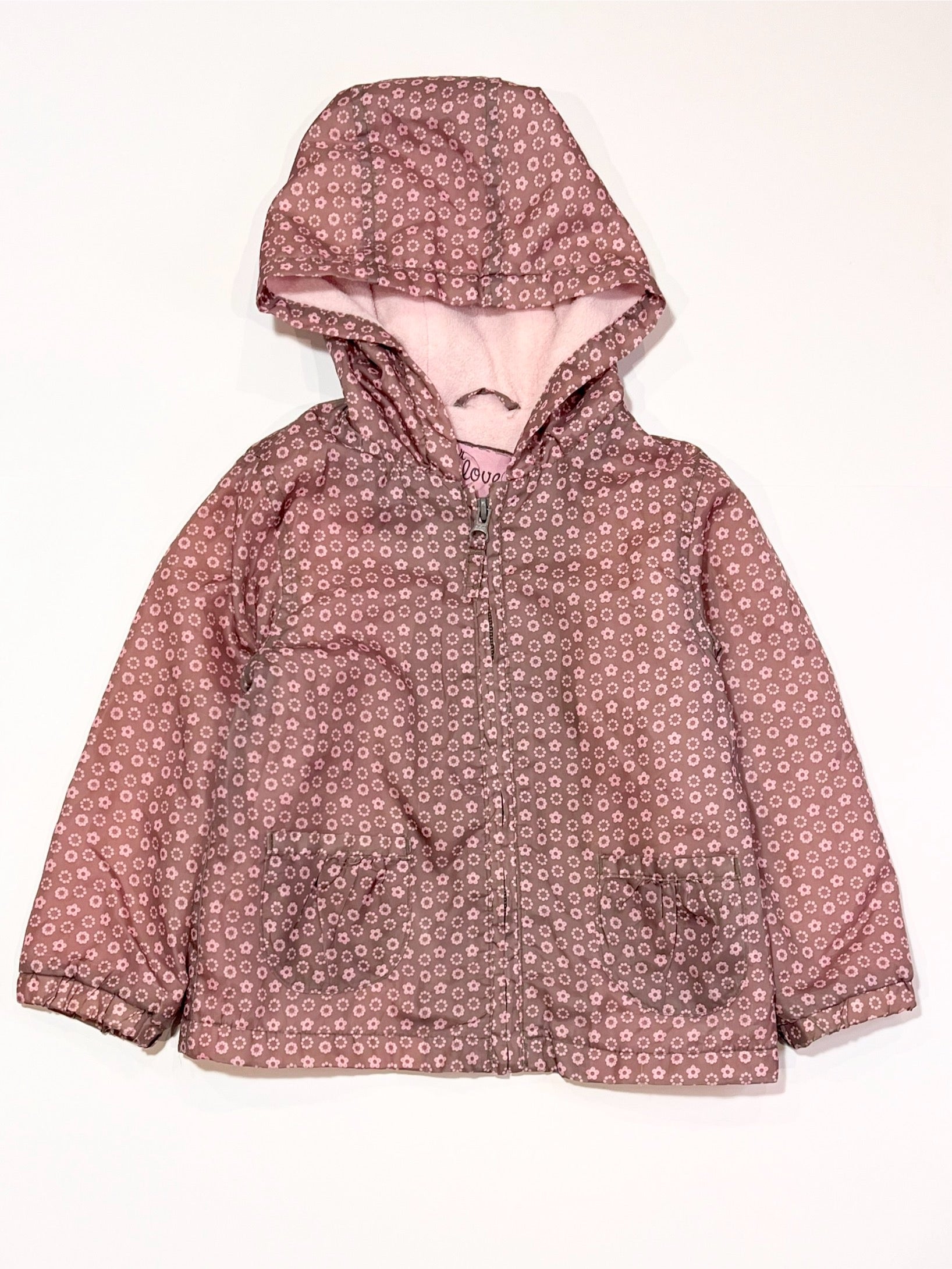 Notes: Lined with pink fleece fabric. Some light pulls in fabric at the back.