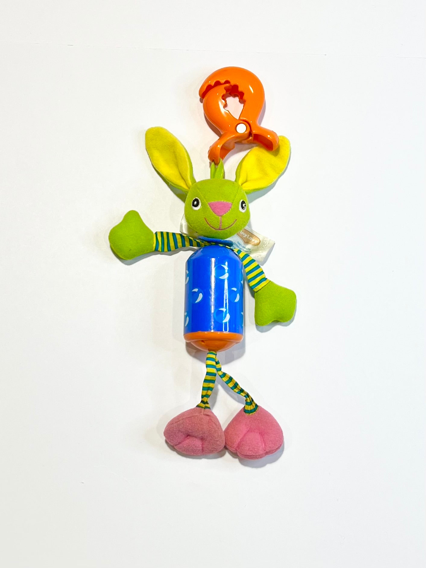 Notes: Clip on to a baby gym or pram and baby can play with the bunny to make a wind chime sound.